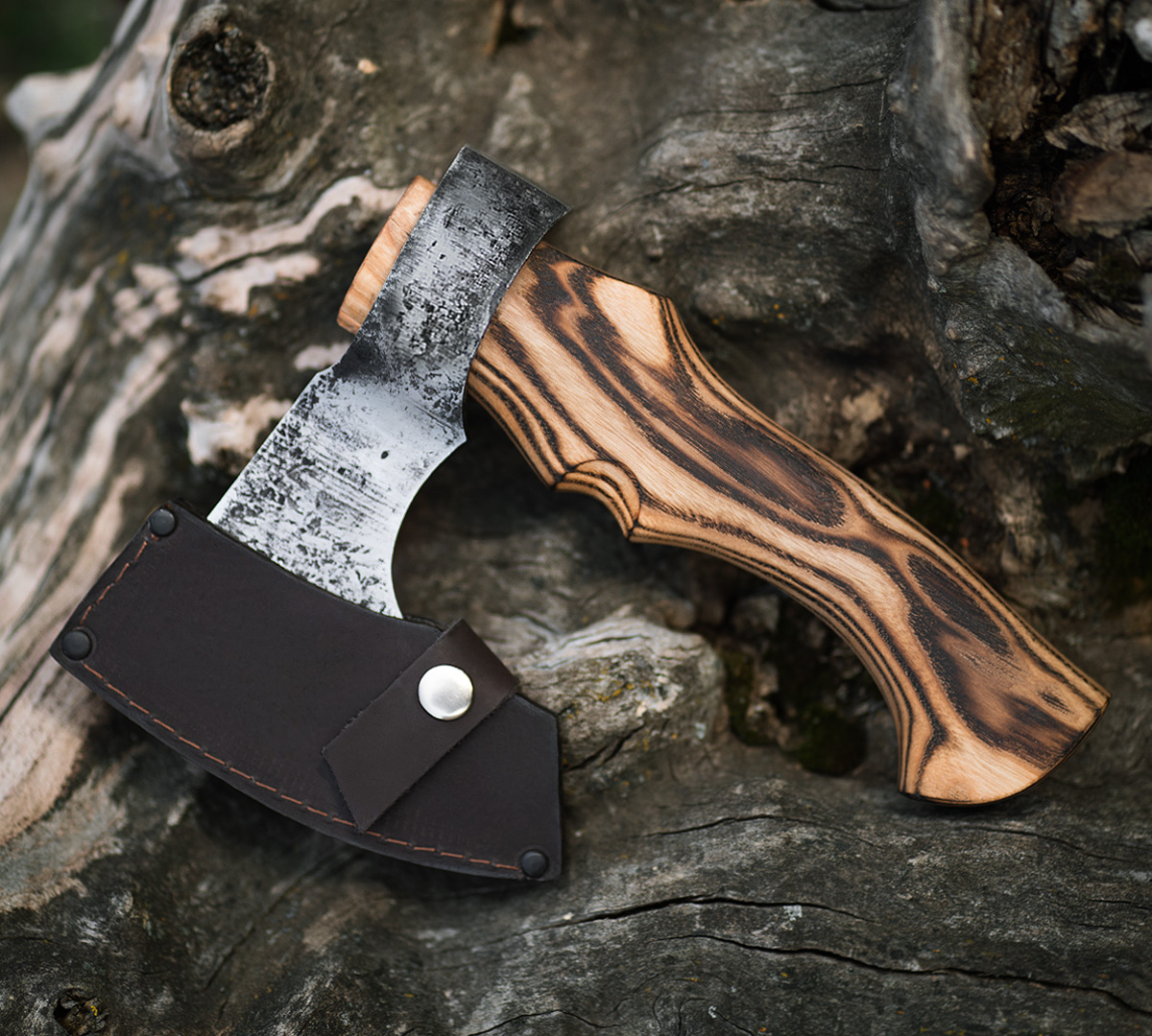 Топор малый из кованной стали 9ХС, рукоять - ясень, кожаный чехол идет в комплекте.